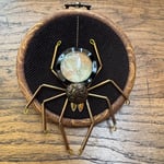Featuring repurposed jewellery, beads and a vintage map under a dome of glass.