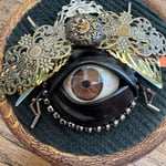 Featuring repurposed jewelley, beads and a human prosthetic eye encased in feveric.
