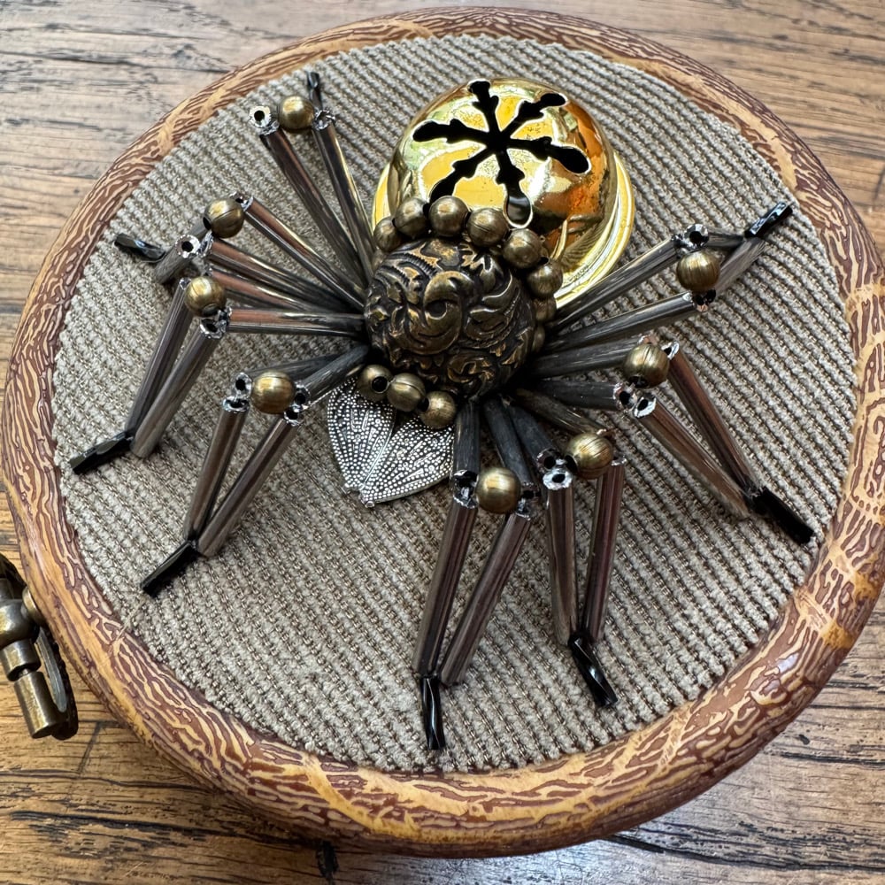 Featuring repurposed jewellery, beads, and a jingle bell.