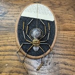 Featuring repurposed jewellery, a bead stuffed with a book page, and a scrap book page.