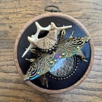 Presented on foiled jersey fabric in a 4 inch flexi hoop.