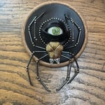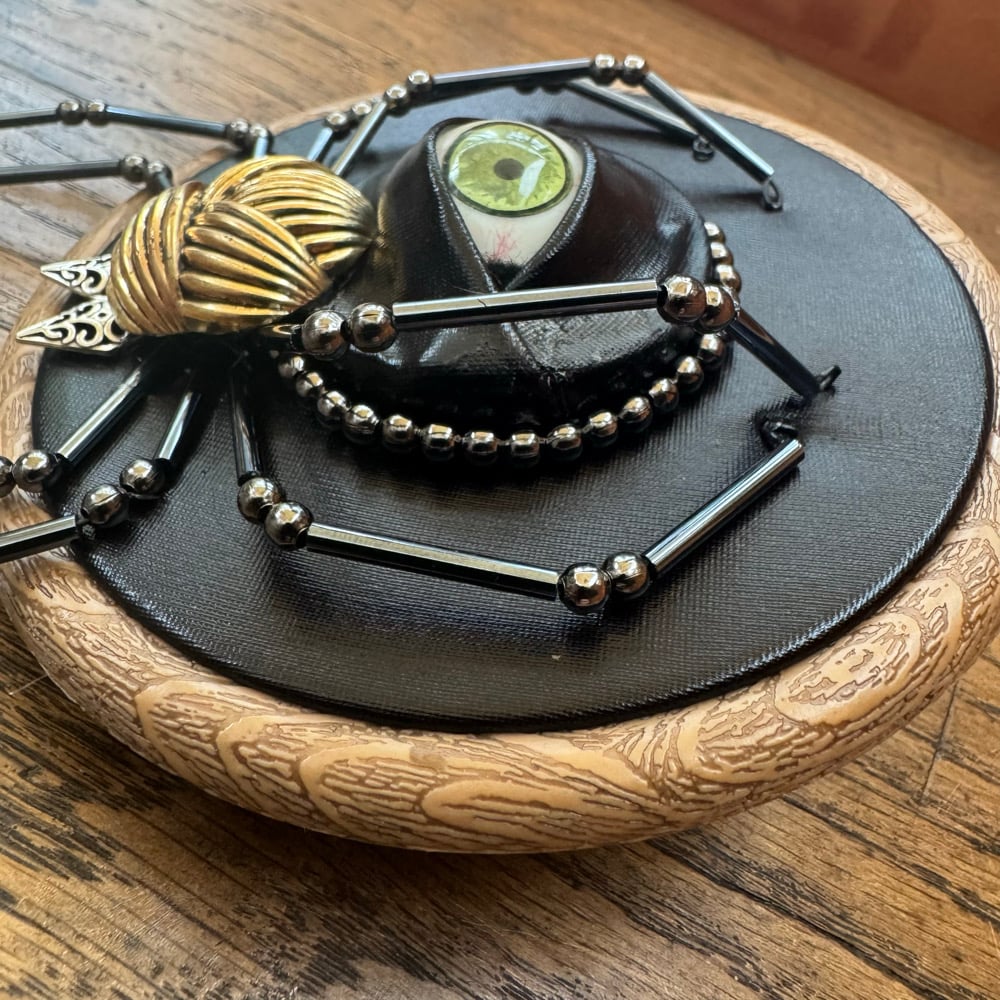 Featuring repurposed jewelley, beads and a human prosthetic eye encased in feveric.