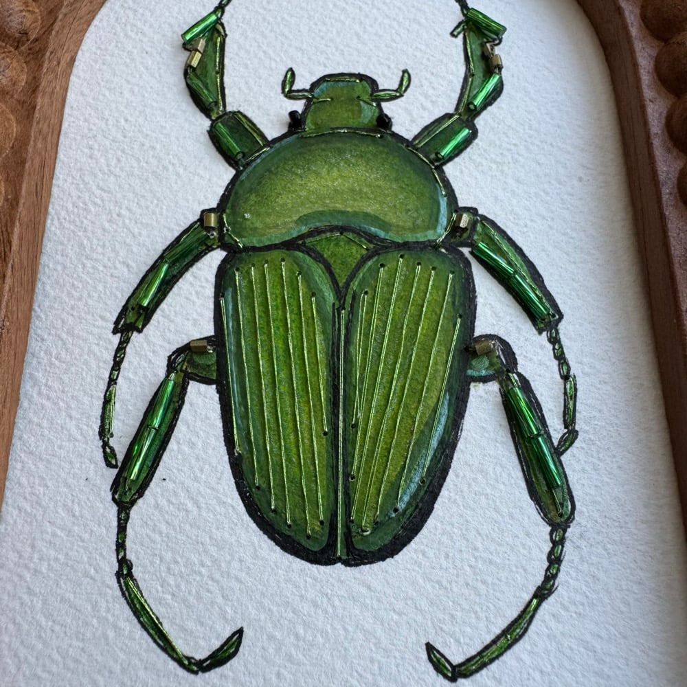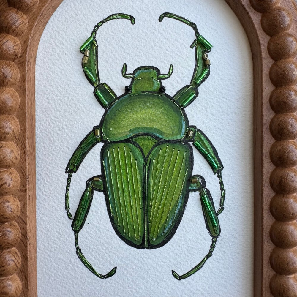 Presented on 300 gm cotton cold pressed paper in a 4x6 inch wooden frame.